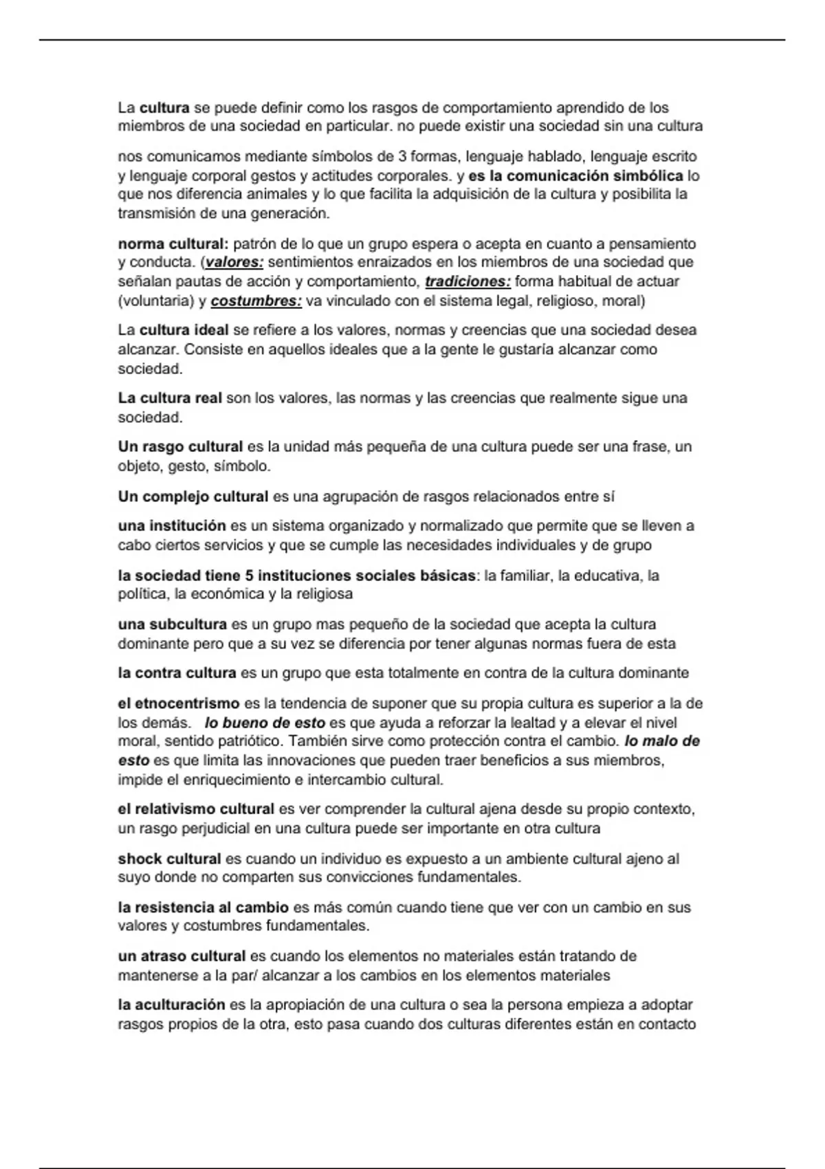 Es un resumen sustancial de lo que sería la cultura y sus derivados, siendo esta de gran importancia por su influencia en el comportamiento humano.
