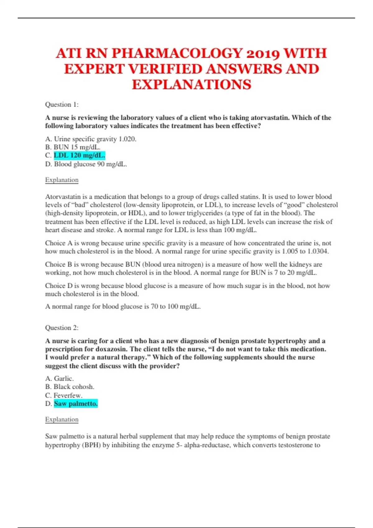 ATI RN PHARMACOLOGY 2019 WITH EXPERT VERIFIED ANSWERS AND EXPLANATIONS