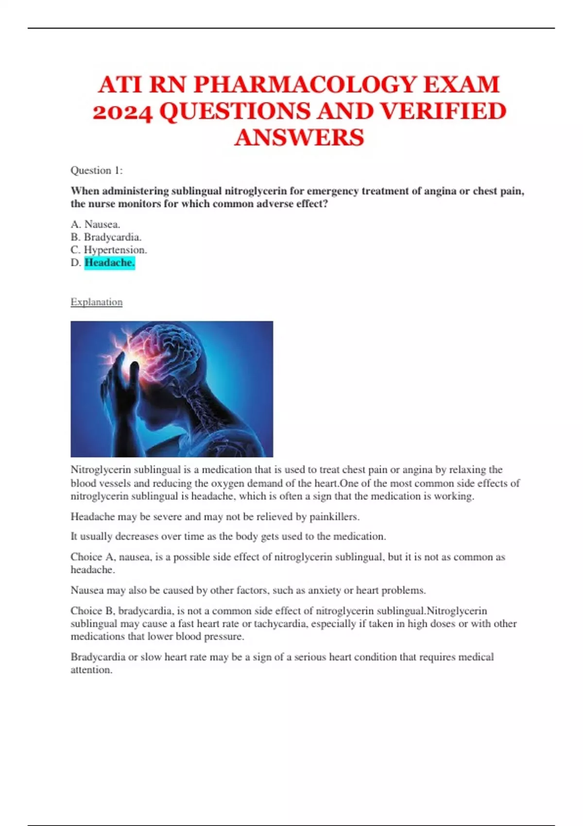 ATI RN PHARMACOLOGY EXAM 2024 QUESTIONS AND VERIFIED ANSWERS