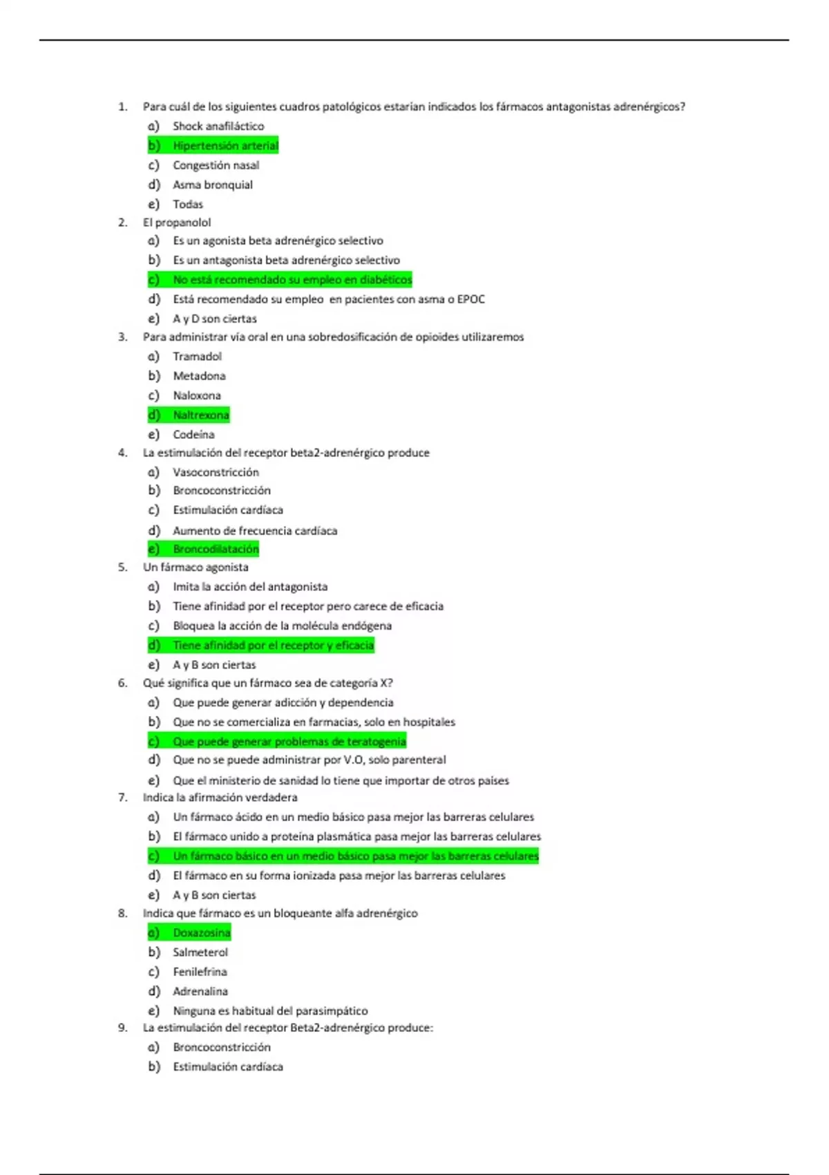 8. Indica que fármaco es un bloqueante alfa adrenérgico