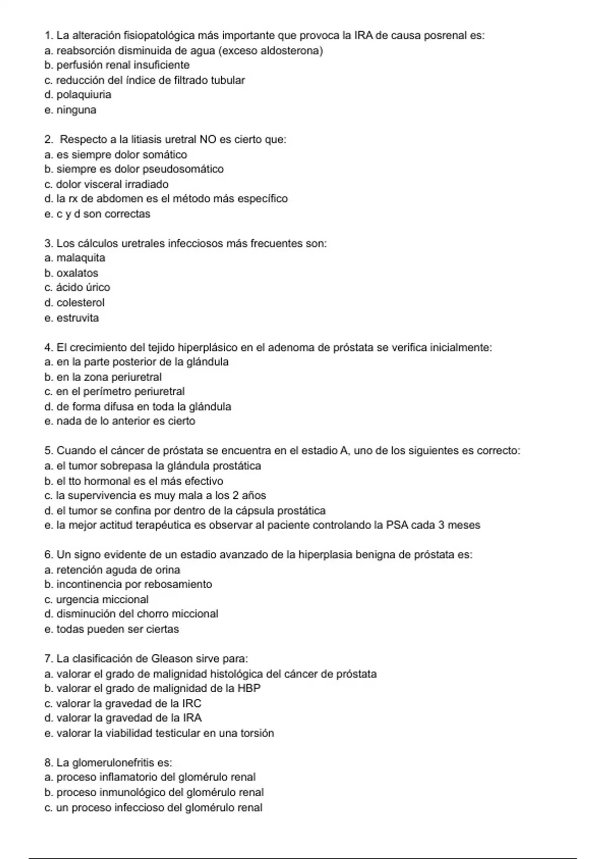 1. La alteración fisiopatológica más importante que provoca la IRA de causa posrenal es: