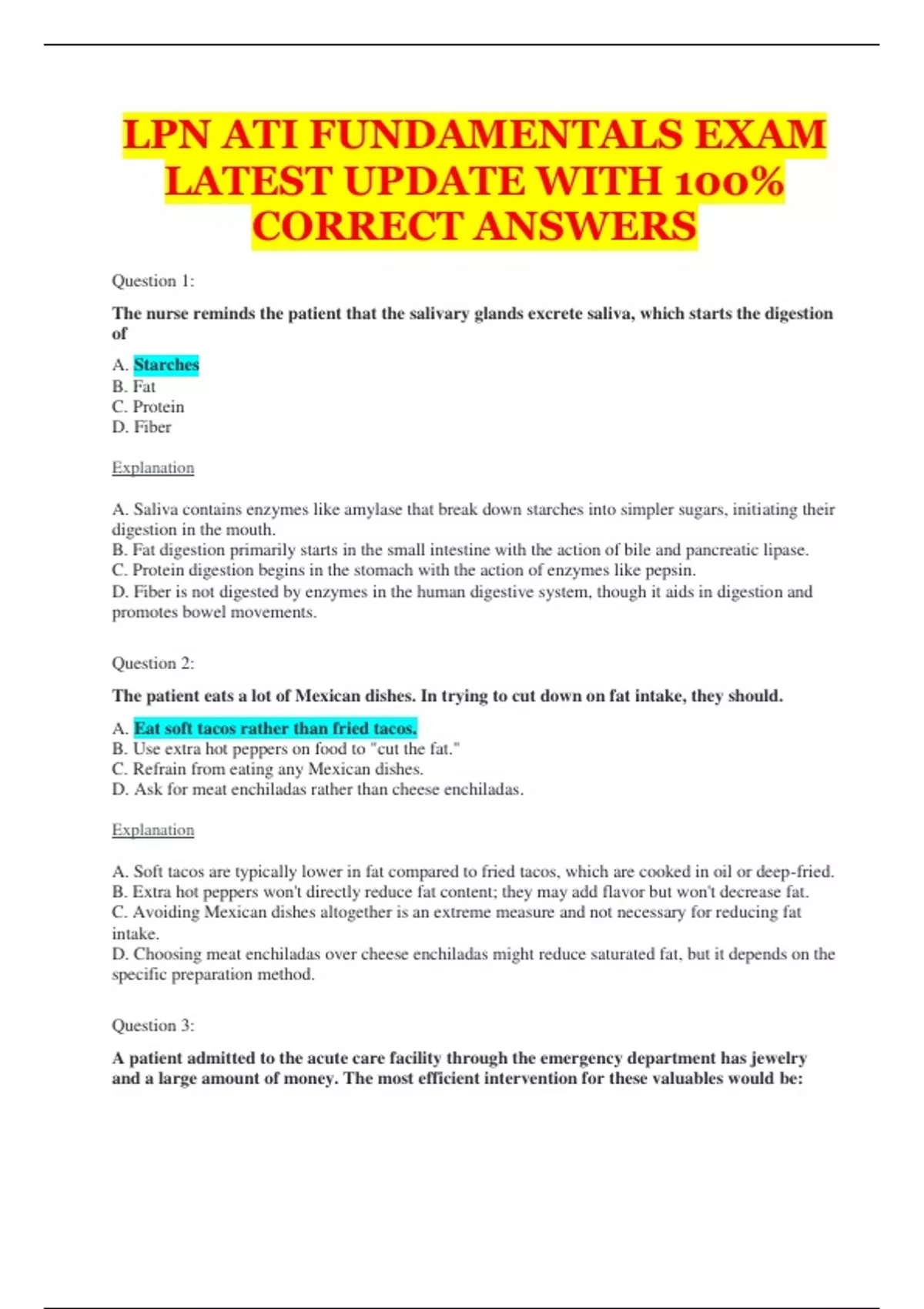 LPN ATI FUNDAMENTALS EXAM LATEST UPDATE WITH 100% CORRECT ANSWERS