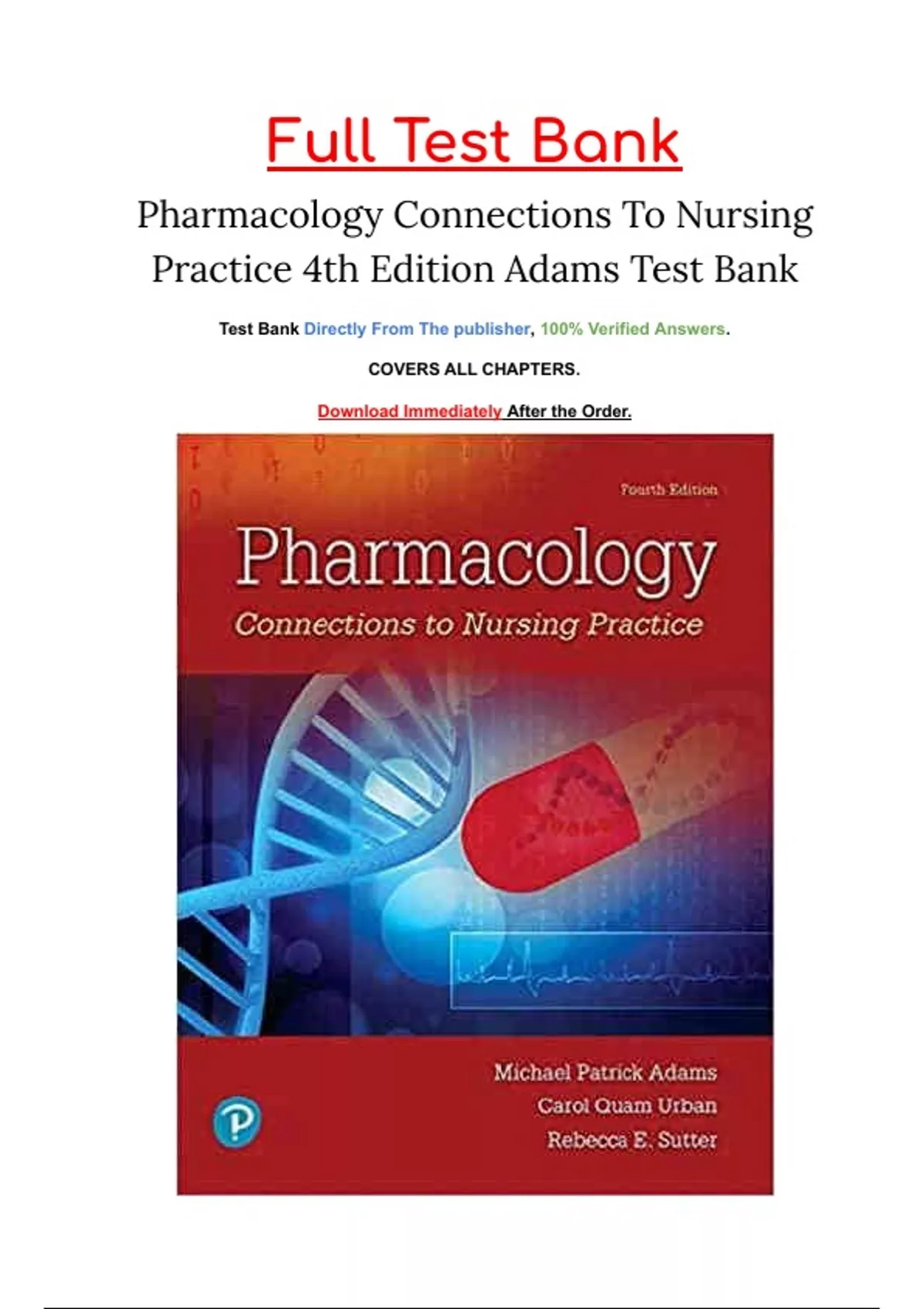 Test Bank For Pharmacology Connections To Nursing Practice 4th Edition Adams | 9780134867366 | All Chapters with Answers and Rationals . Instant Delivery .