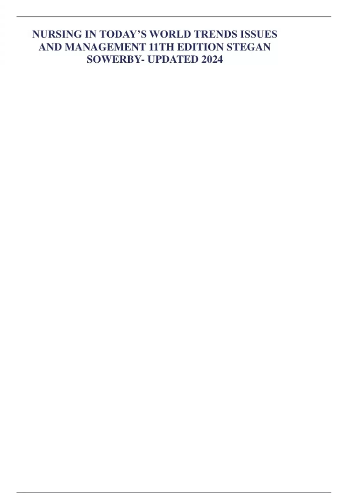 NURSING IN TODAY’S WORLD TRENDS ISSUES AND MANAGEMENT 11TH EDITION STEGAN SOWERBY- UPDATED 2024