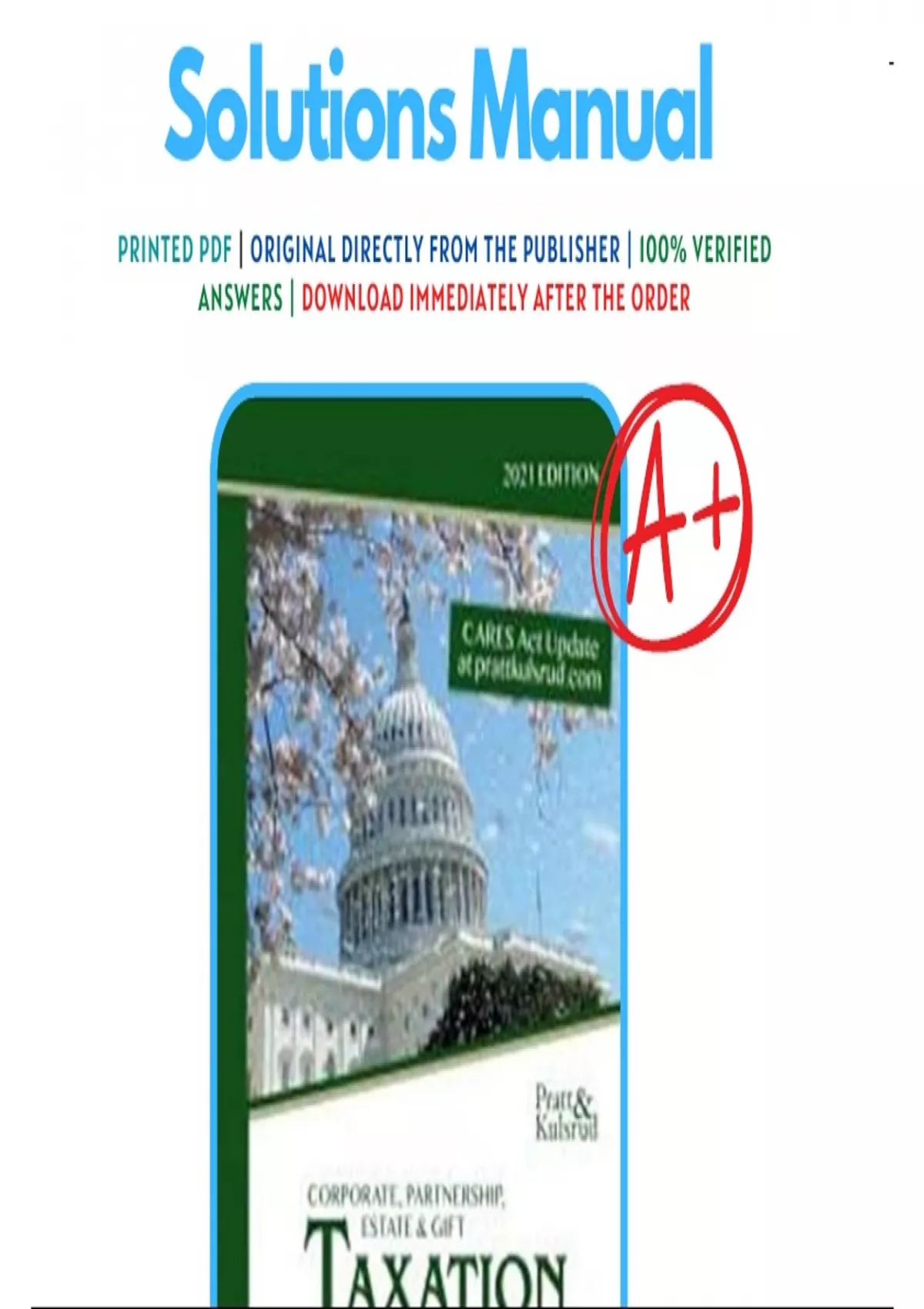 Solutions Manual For Corporate Partnership Estate and Gift Taxation 2021 1st Edition Pratt 9781617407901 | All Chapters with Answers and Rationals . Instant Delivery .