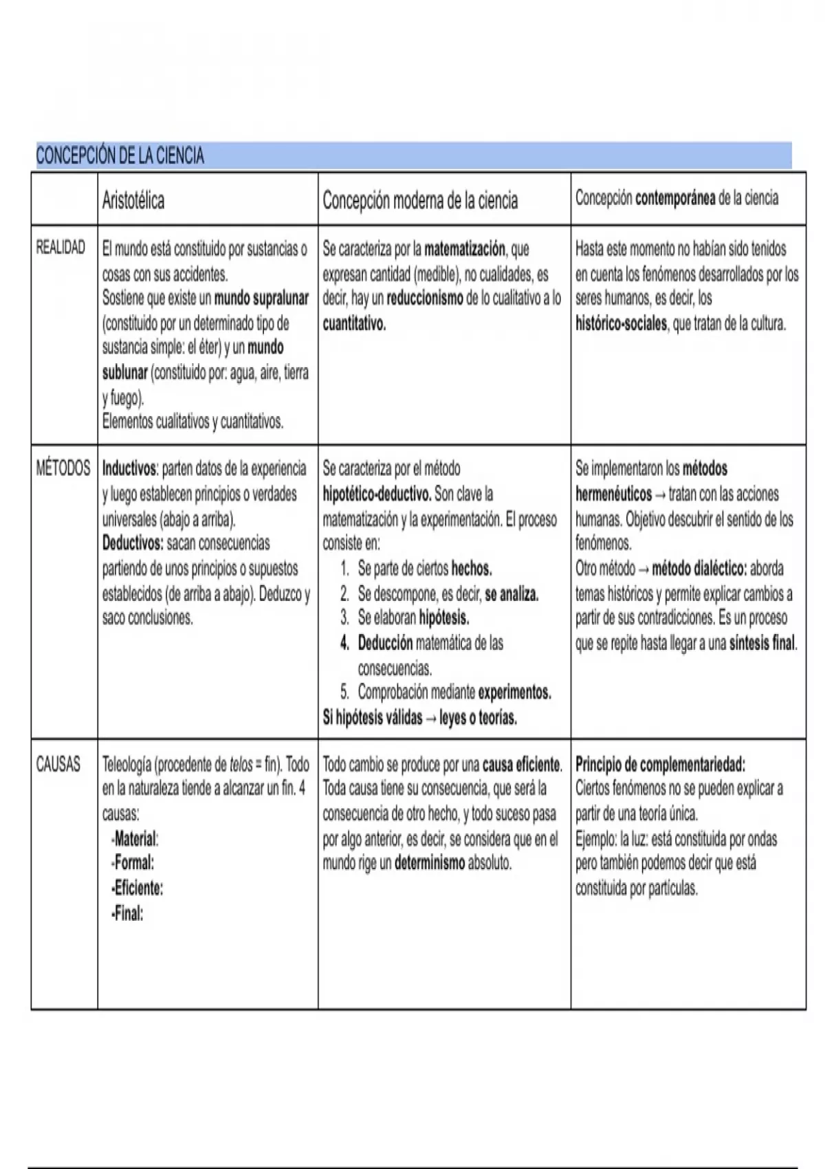 Aristotélica Concepción moderna de la ciencia Concepción contemporánea de la ciencia