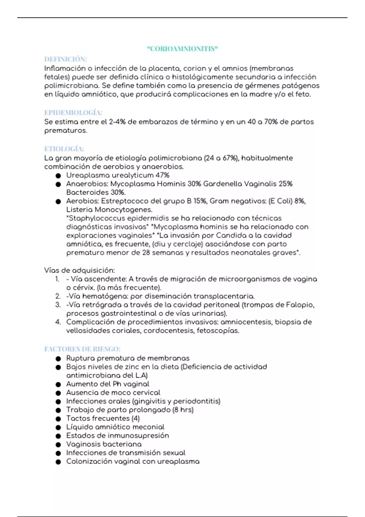 RESUMEN DETALLADO DE CORIOAMNIONITIS CON SUS BASES BIEN EXPLICADOS