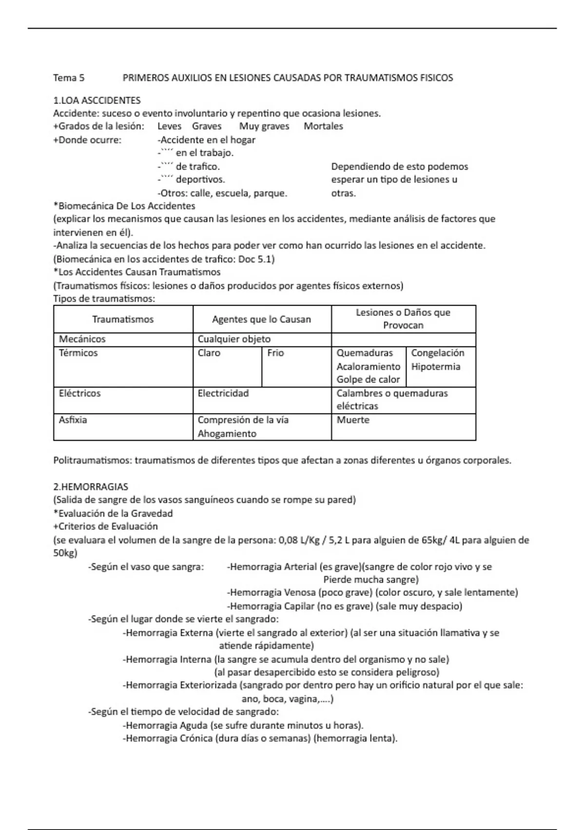 Tema 5 PRIMEROS AUXILIOS EN LESIONES CAUSADAS POR TRAUMATISMOS FISICOS