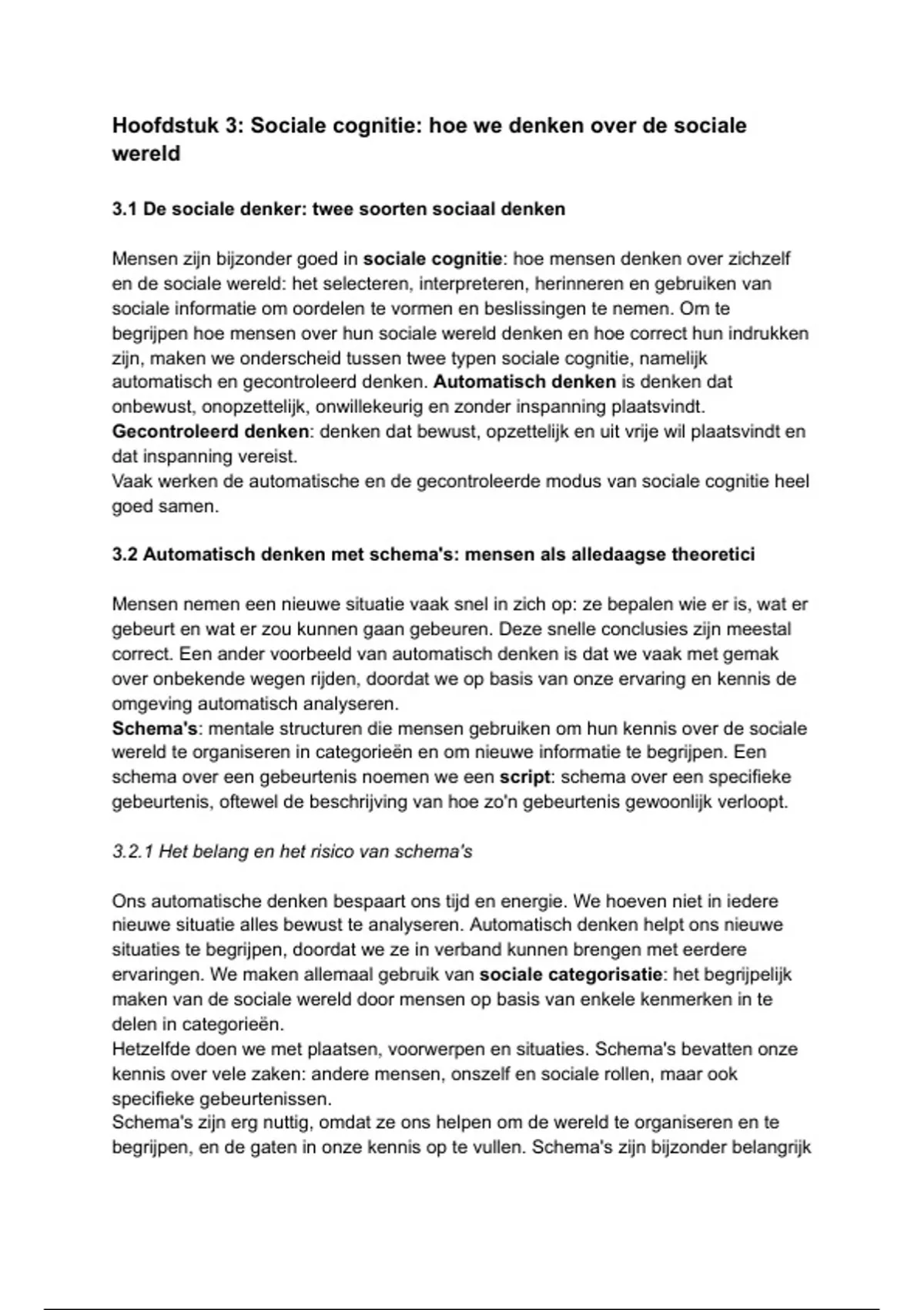 Hoofdstuk 3: Sociale cognitie: hoe we denken over de sociale