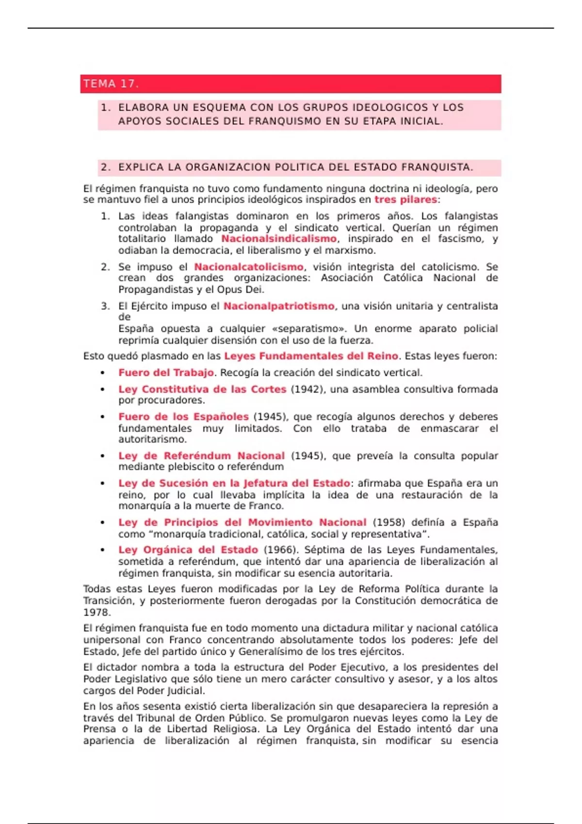2. EXPLICA L A ORGANIZACIÓN POLÍTICA DEL ESTADO FRANQUISTA.