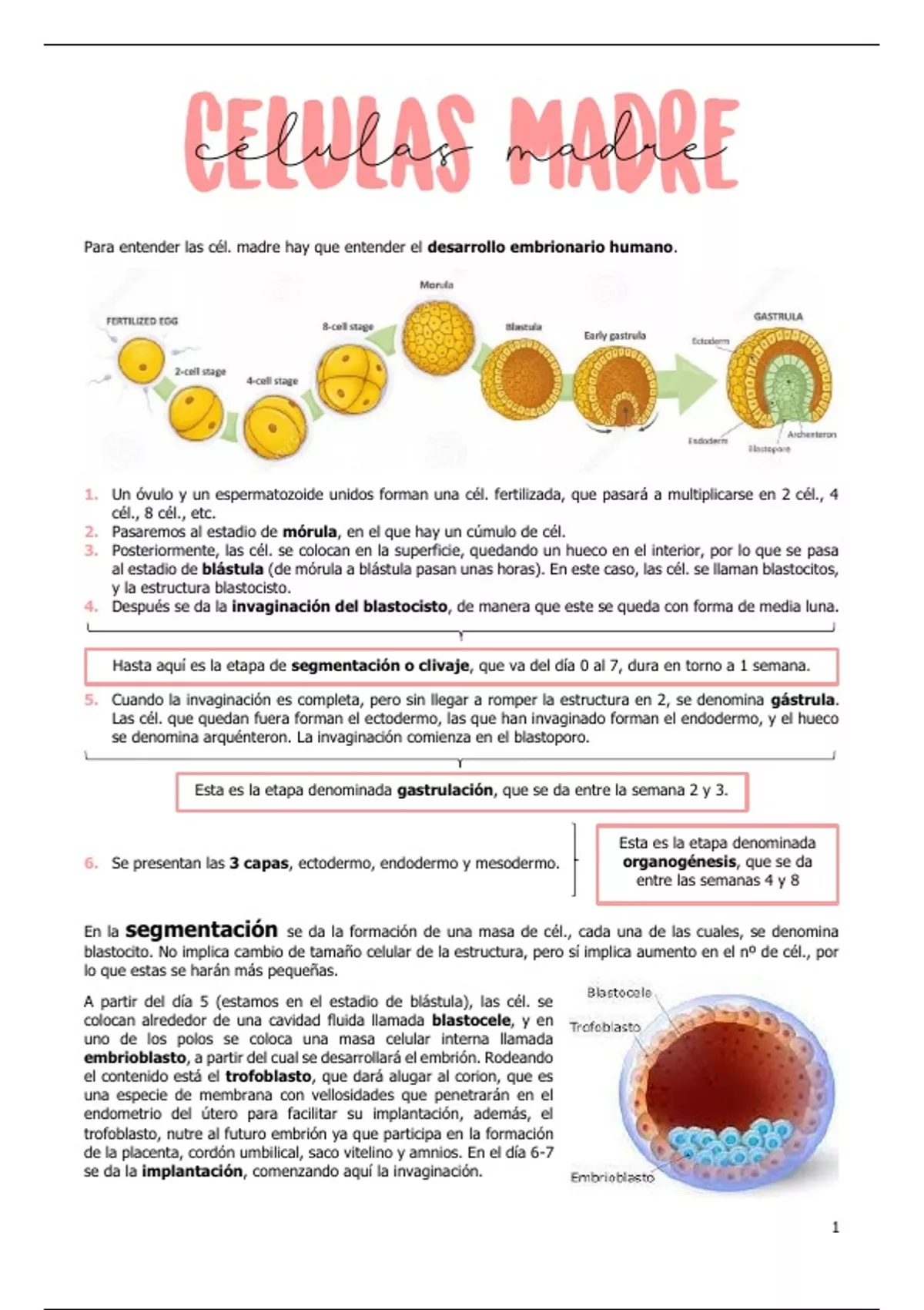 Para entender las cél. madre hay que entender el desarrollo embrionario humano.