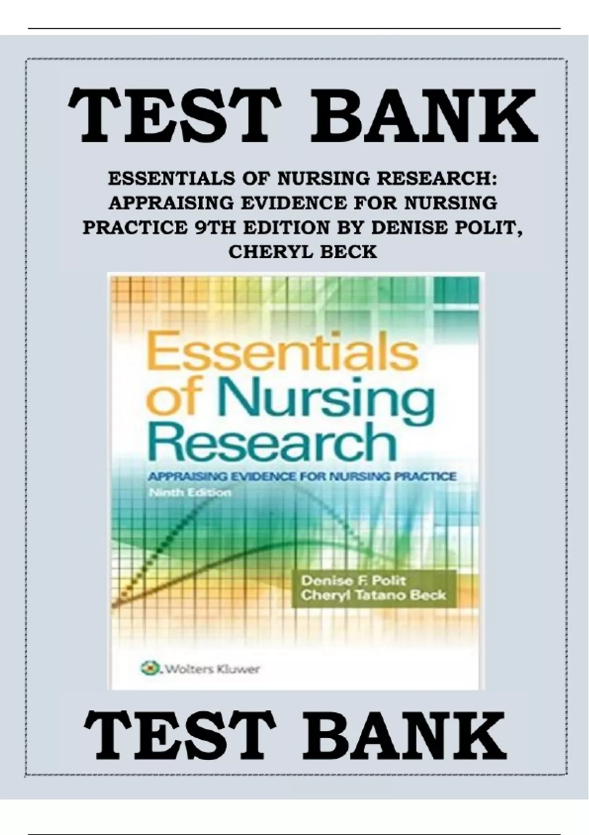 TEST BANK Essentials of Nursing Research Appraising Evidence for Nursing Practice (9TH) by Denise Polit Complete Guide All Chapters