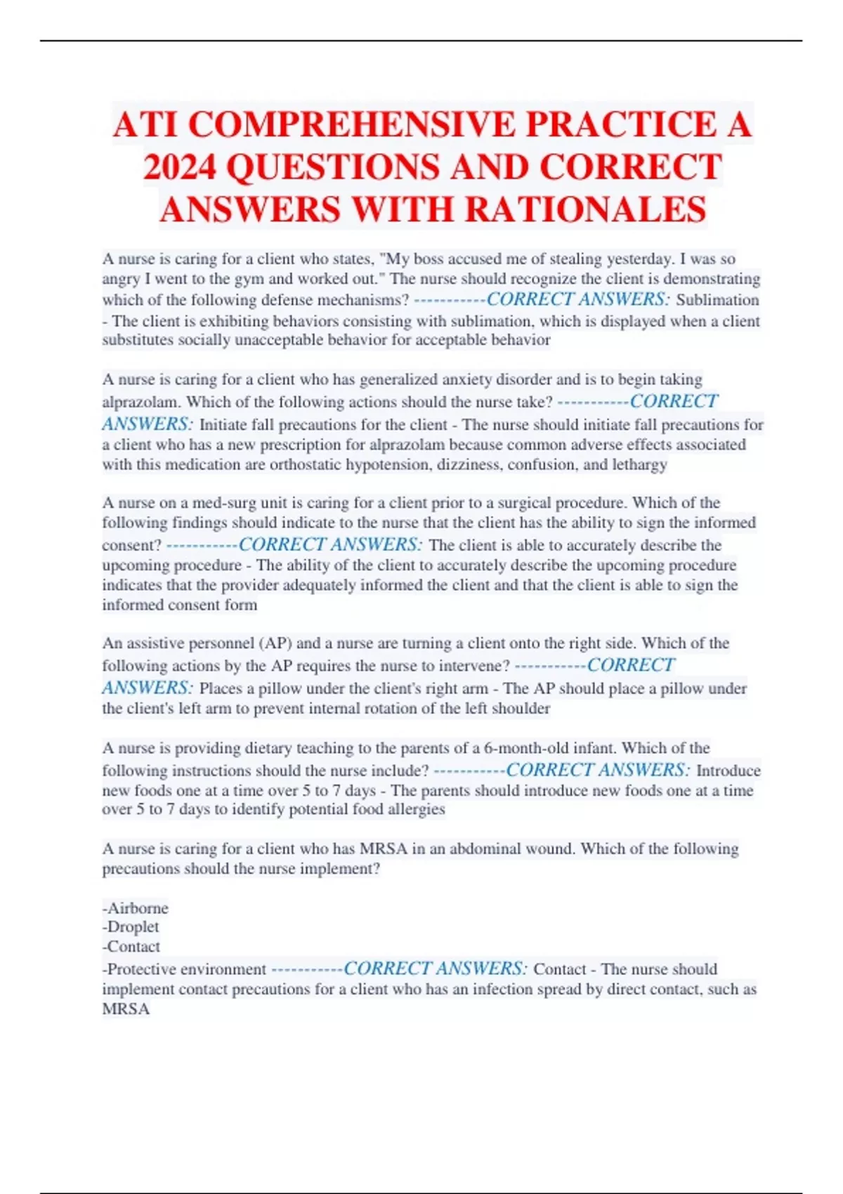 ATI COMPREHENSIVE PRACTICE A 2024 QUESTIONS AND CORRECT ANSWERS WITH RATIONALES