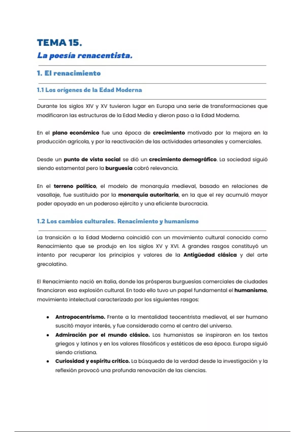 1.2 Los cambios culturales. Renacimiento y humanismo