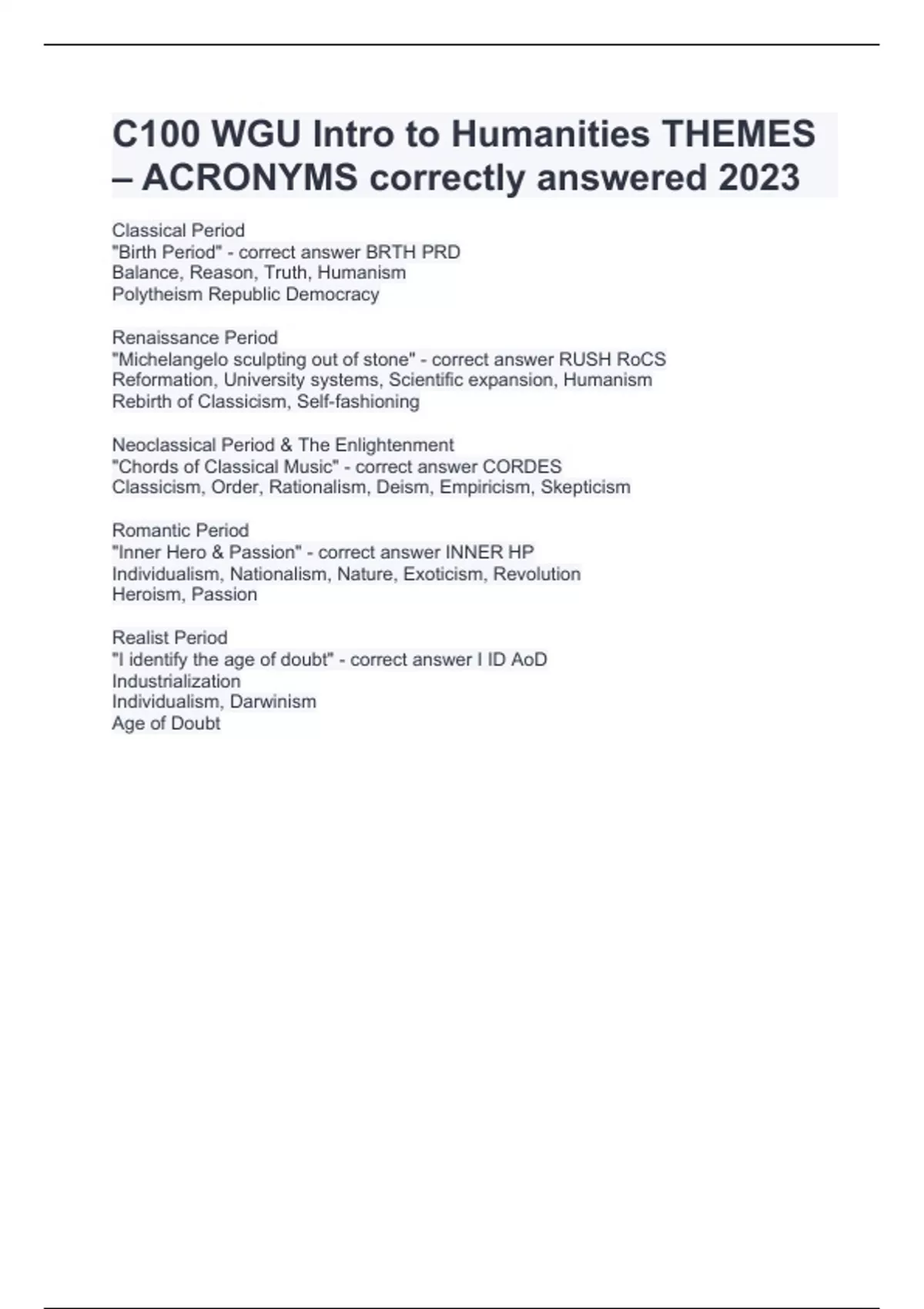 c100 wgu intro to humanities themesquestions with