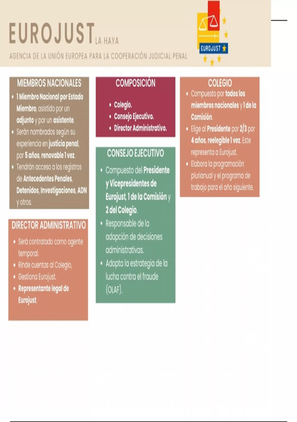 Resumen perfecto EUROJUST, incluye toda la información necesaria para preparar el bloque de Instituciones Internacionales.