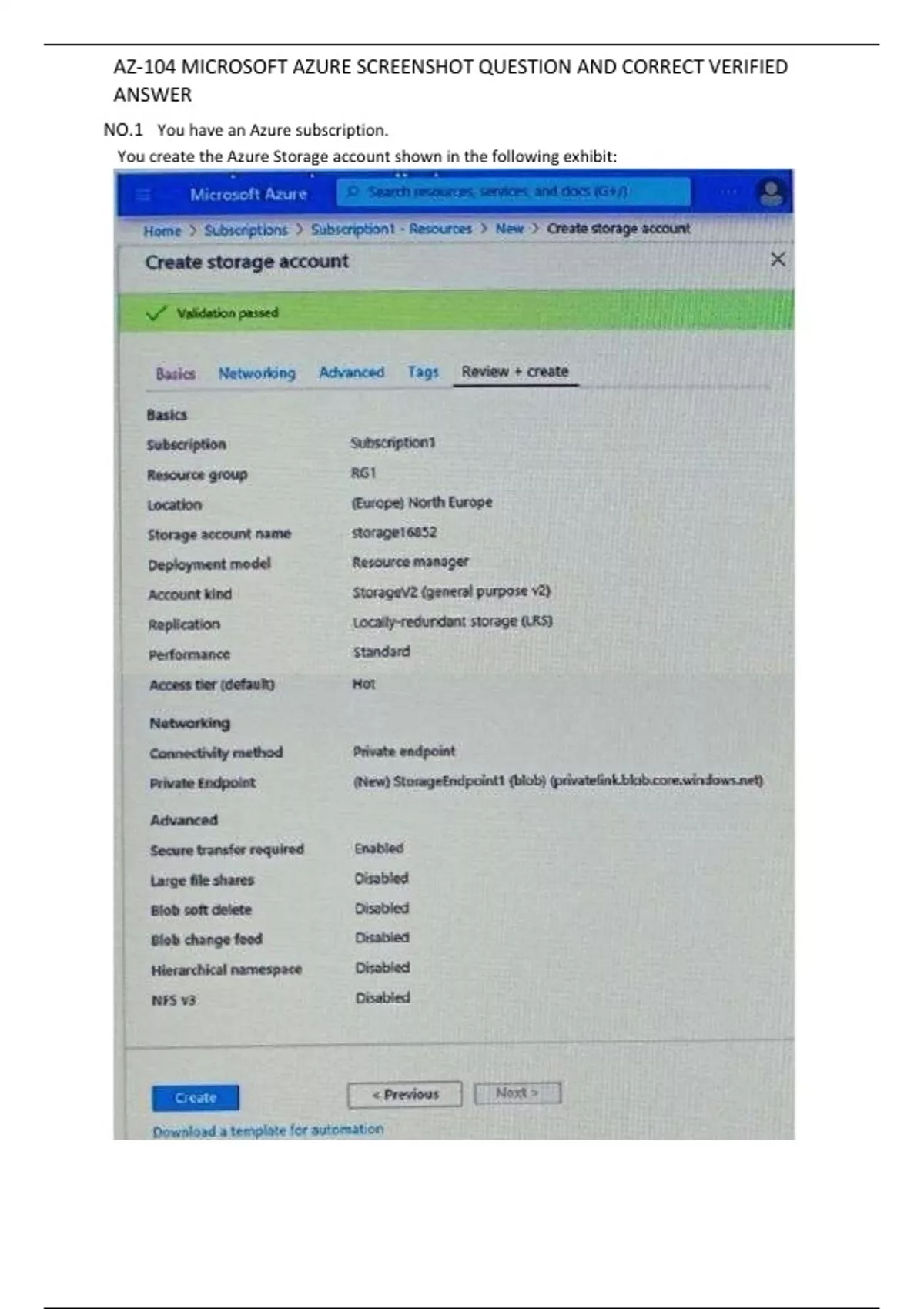 AZ-104 MICROSOFT AZURE SCREENSHOT QUESTION AND CORRECT VERIFIED ANSWER
