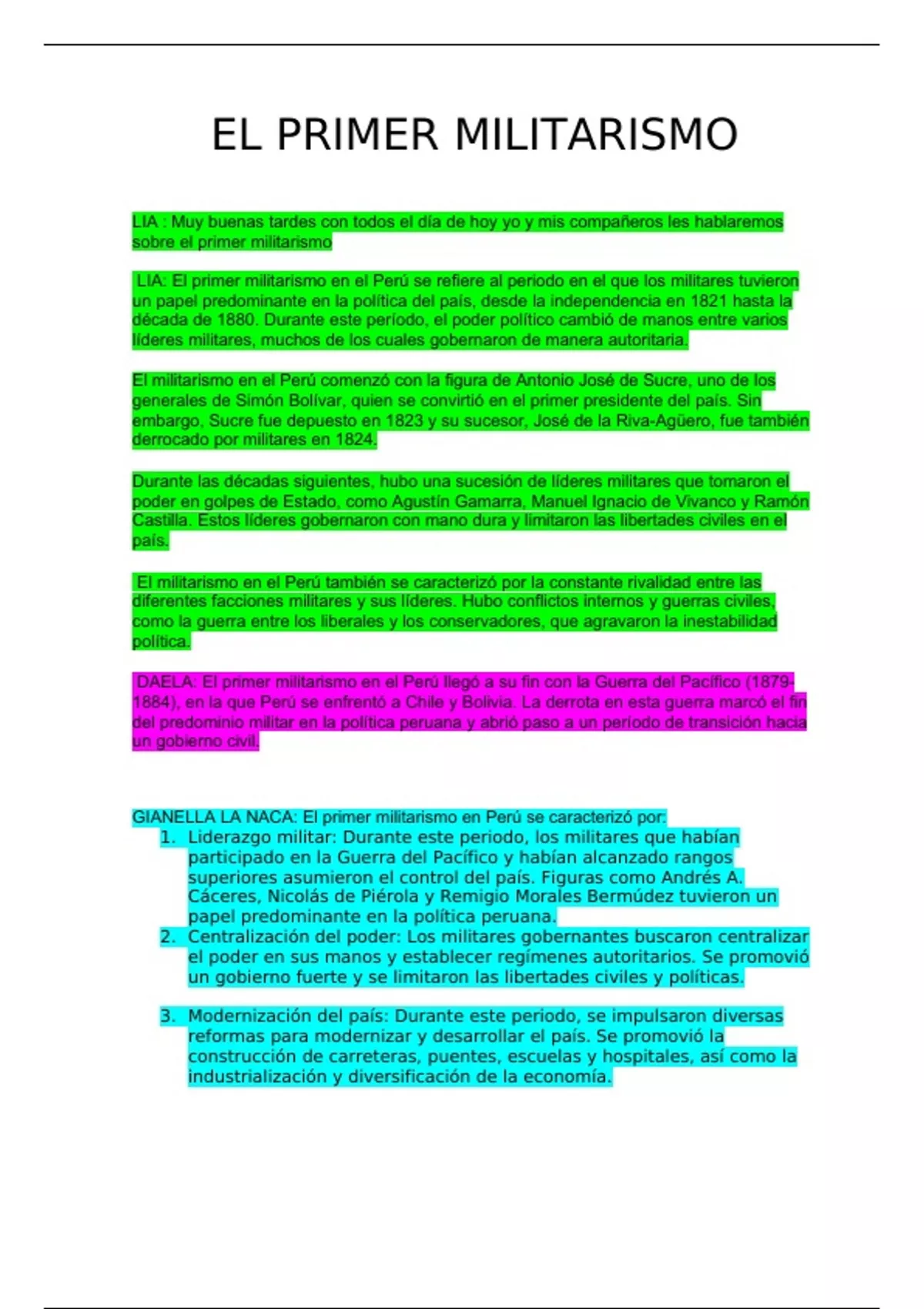 GIANELLA LA NACA: El primer militarismo en Perú se caracterizó por: