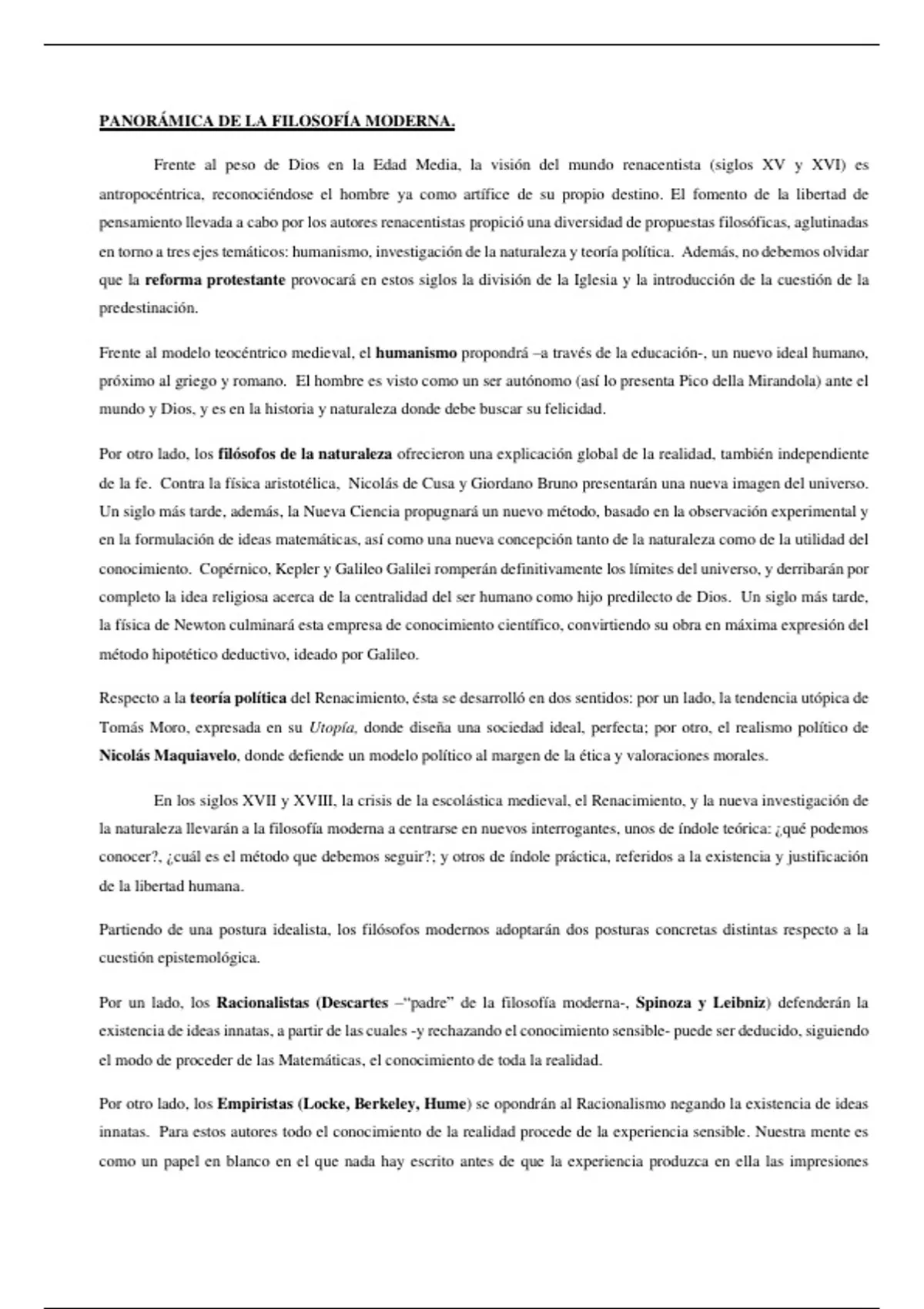 Panoramas resumidos de la Edad Moderna y Edad Medieval de Historia de la filosofía