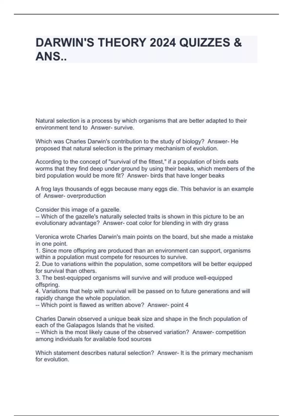 DARWIN'S THEORY 2024 QUIZZES & ANS..