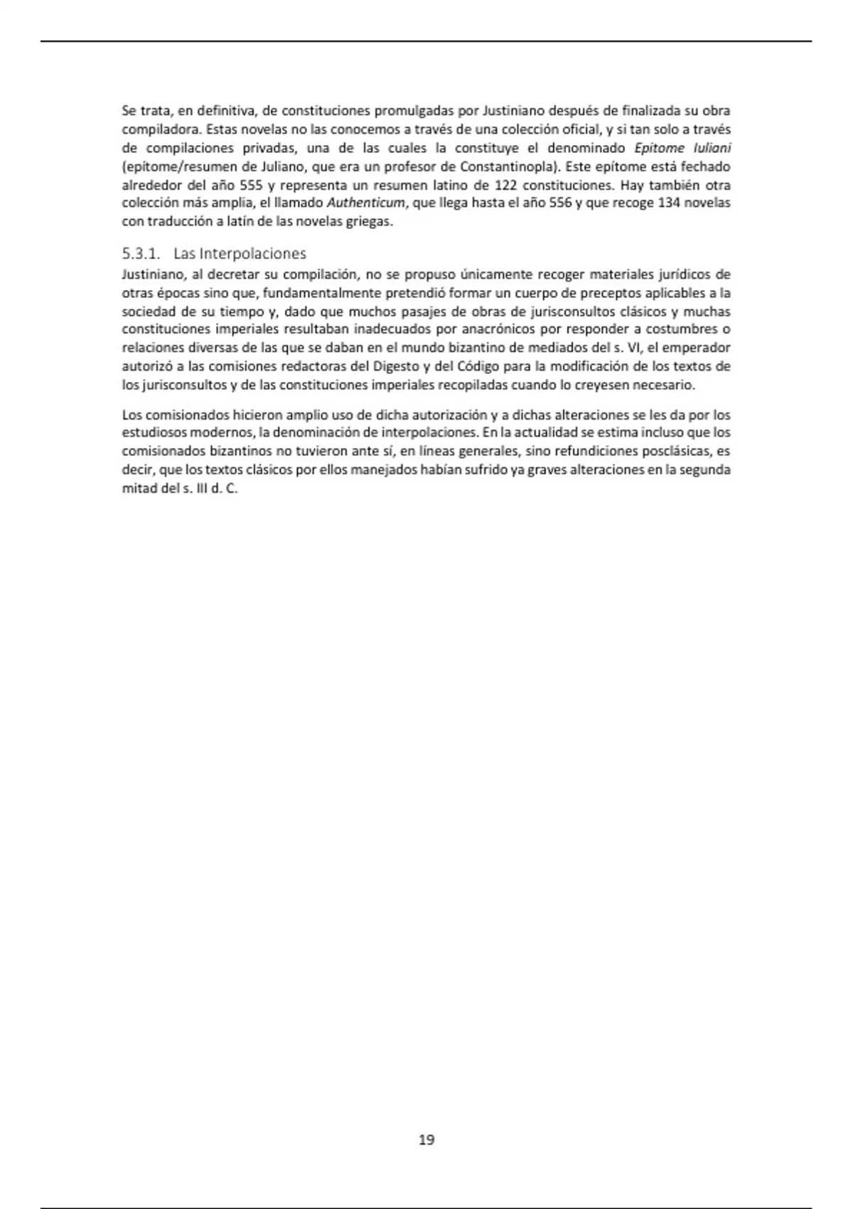(epítome/resumen de Juliano, que era un profesor de Constantinopla). Este epítome está fechado