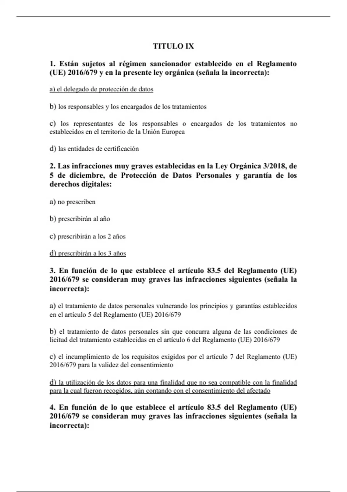 (UE) 2016/679 y en la presente ley orgánica (señala la incorrecta):