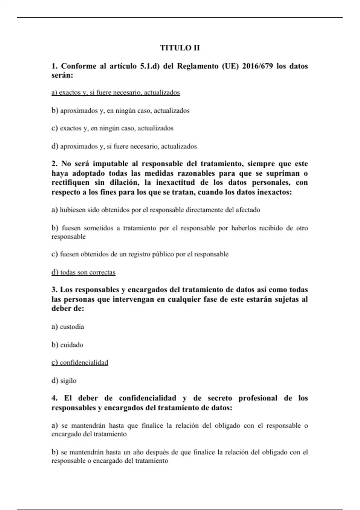 1. Conforme al artículo 5.1.d) del Reglamento (UE) 2016/679 los datos