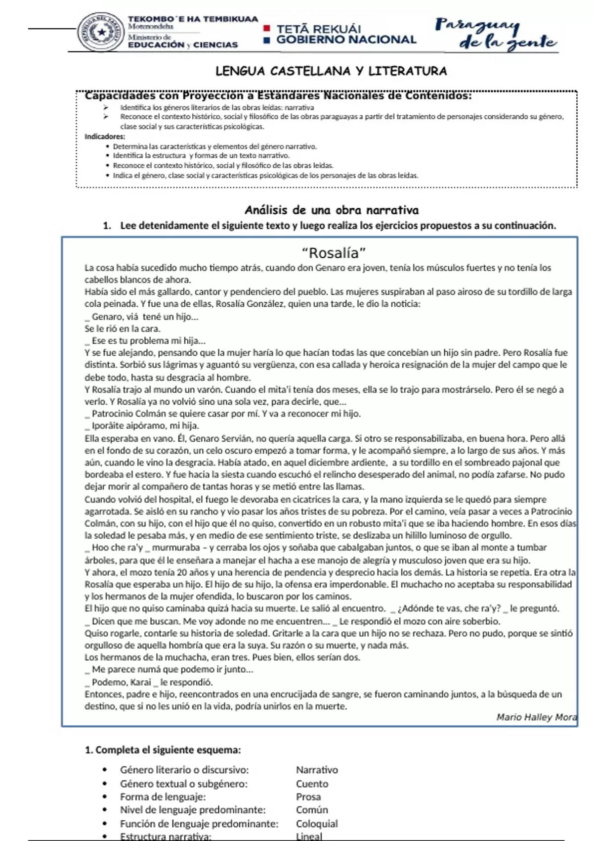 Reconoce el contexto histórico, social y filosófico de las obras paraguayas a partir del tratamiento de personajes considerando su género,