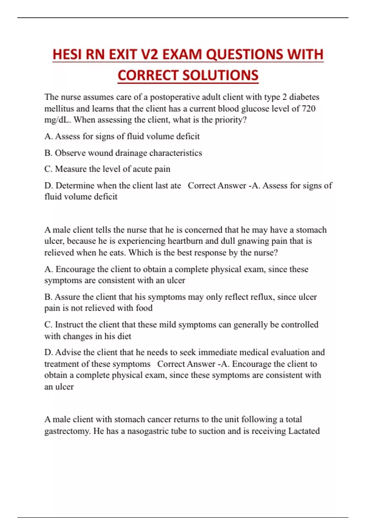 HESI RN EXIT V2 EXAM QUESTIONS WITH CORRECT SOLUTIONS