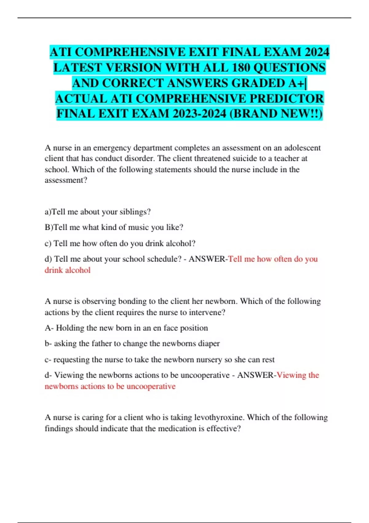 NGN ATI COMPREHENSIVE PREDICTOR 2023 ACTUAL EXAM ALL 180 QUESTIONS AND CORRECT ANSWERS GRADED A (LYMES DISEASE VERSION 2024 LATEST!!)
