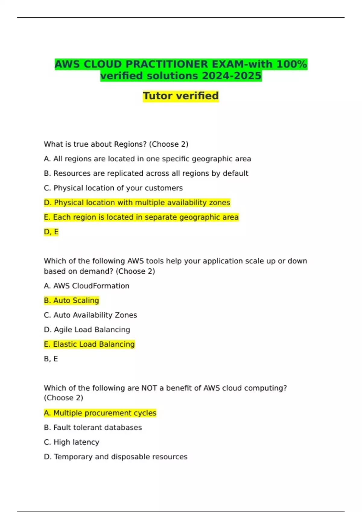 AWS CLOUD PRACTITIONER EXAM-with 100% verified solutions