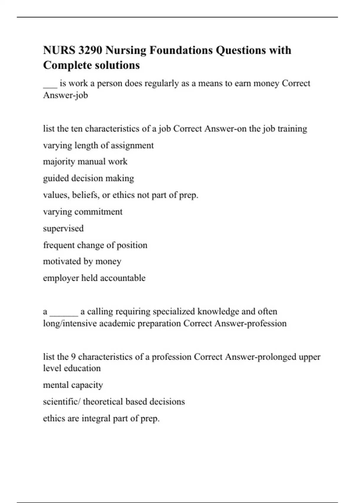 NURS 3290 Nursing Foundations Questions with Complete solutions