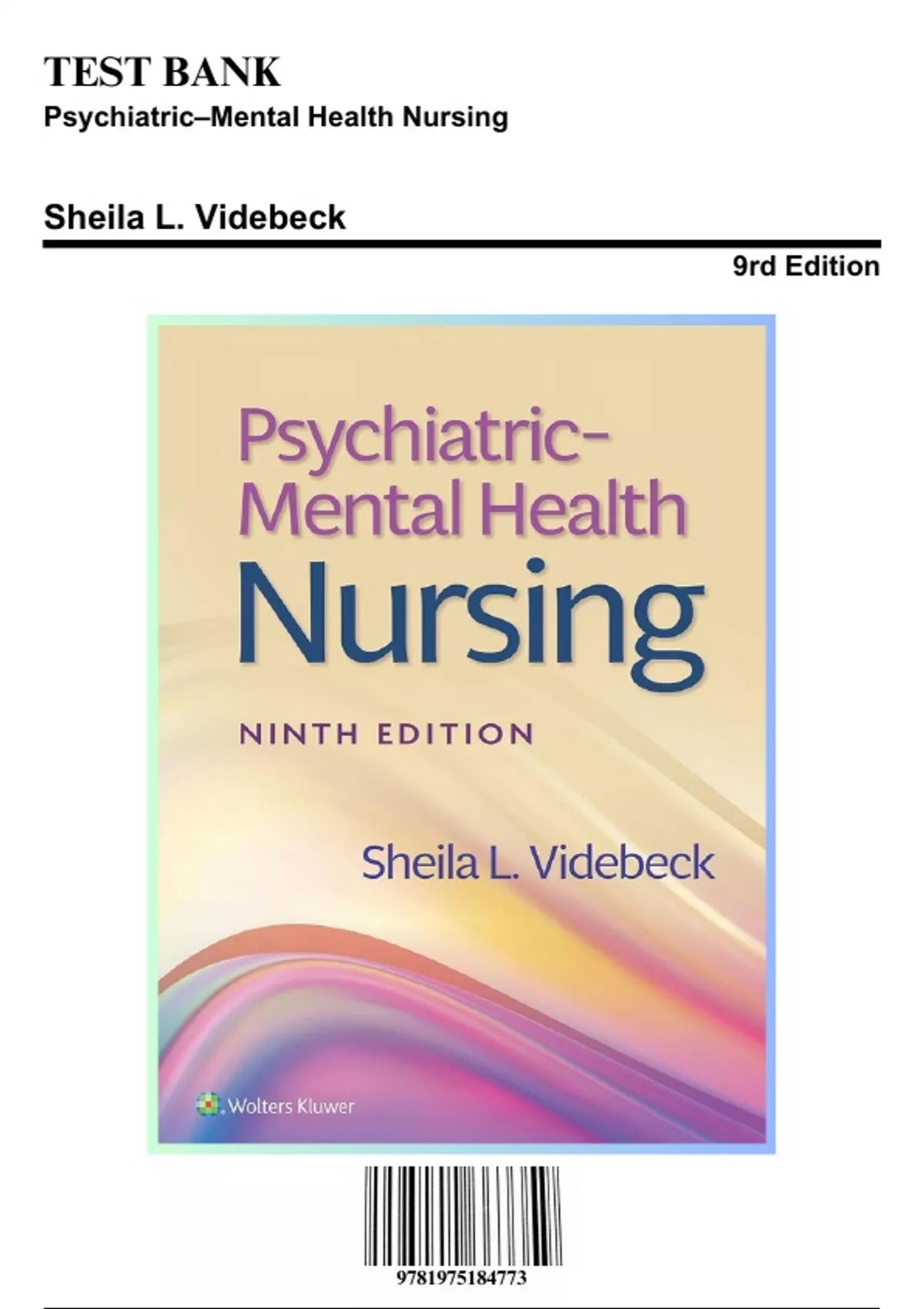 Test Bank - Psychiatric Mental Health Nursing, 9th Edition (Videbeck, 9781975184773), Chapter 1-24 | Rationals Included