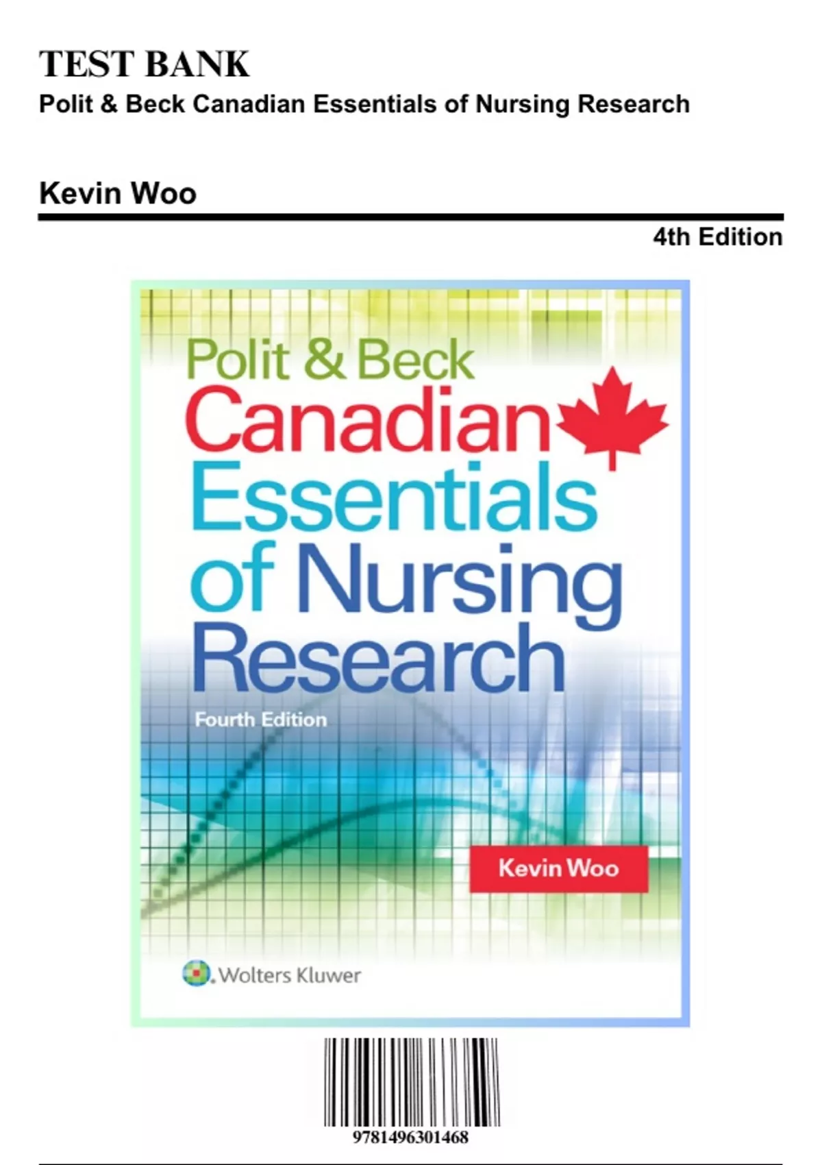 Test Bank - Polit & Beck Canadian Essentials of Nursing Research, 4th Edition (Woo, 9781496301468), Chapter 1-18 | Rationals Included