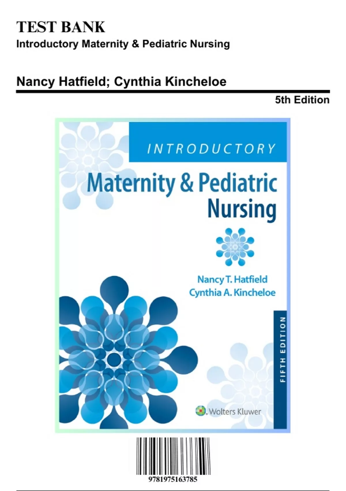 Test Bank for Introductory Maternity & Pediatric Nursing, 5th Edition by Hatfield, 9781975163785, Covering Chapters 1-42 | Includes Rationales