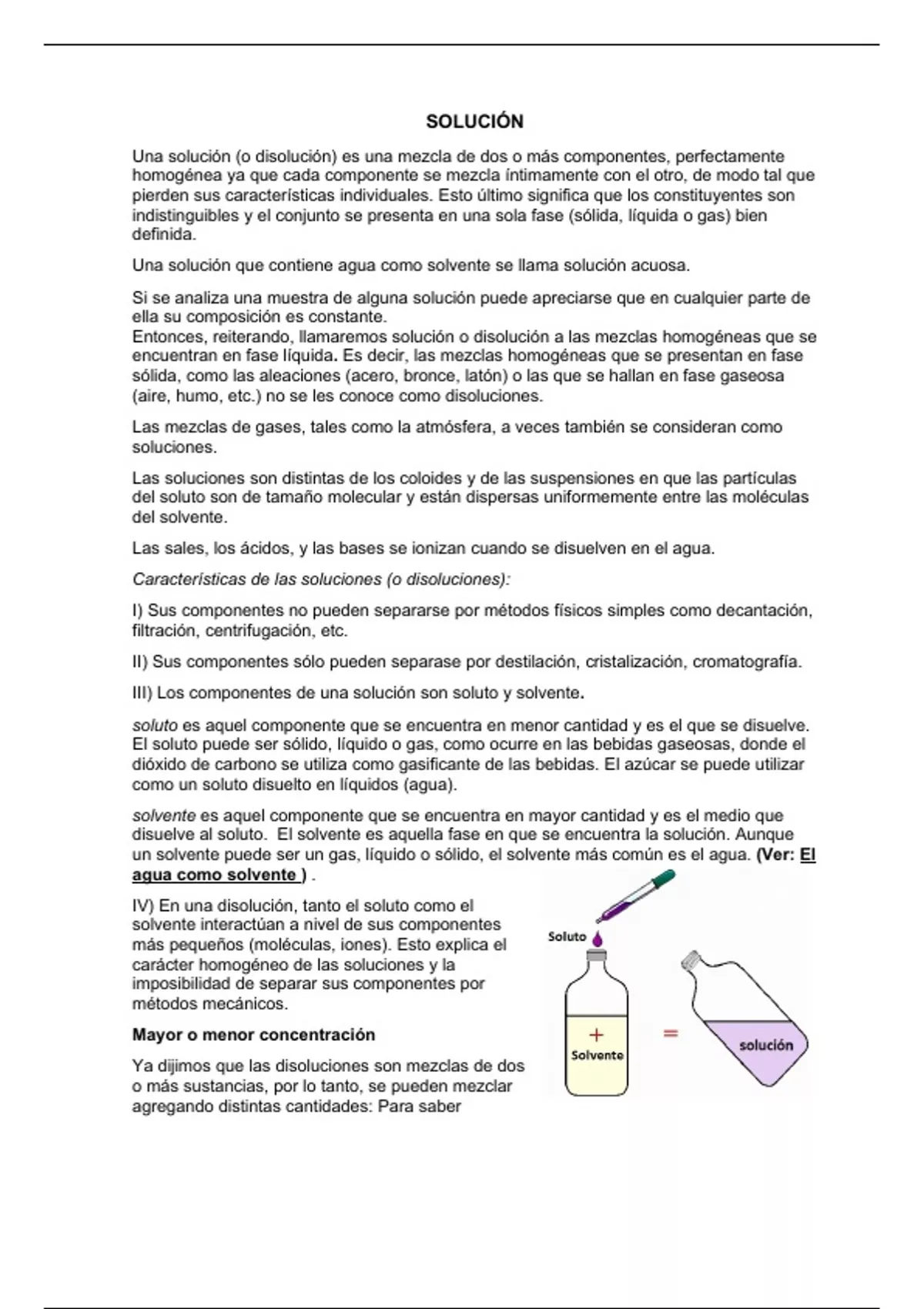 Características de las soluciones (o disoluciones):