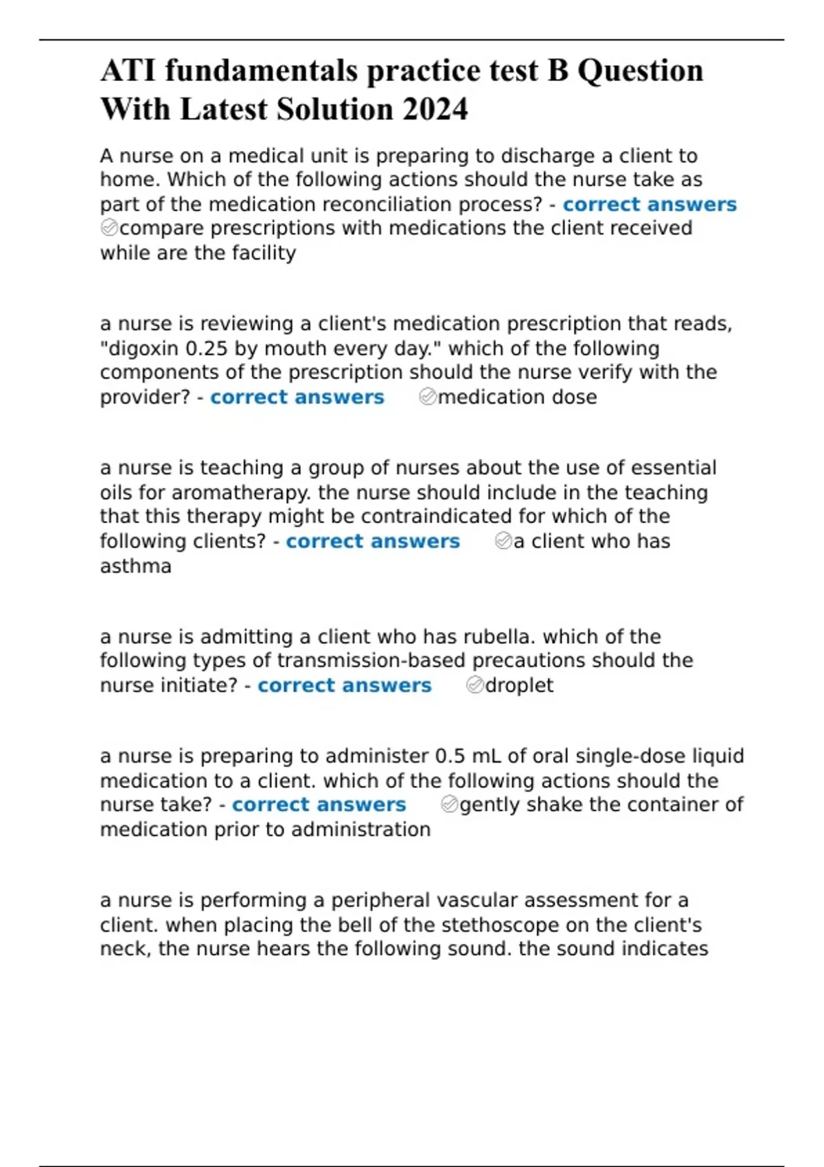 ATI fundamentals practice test B Question With Latest Solution 2024