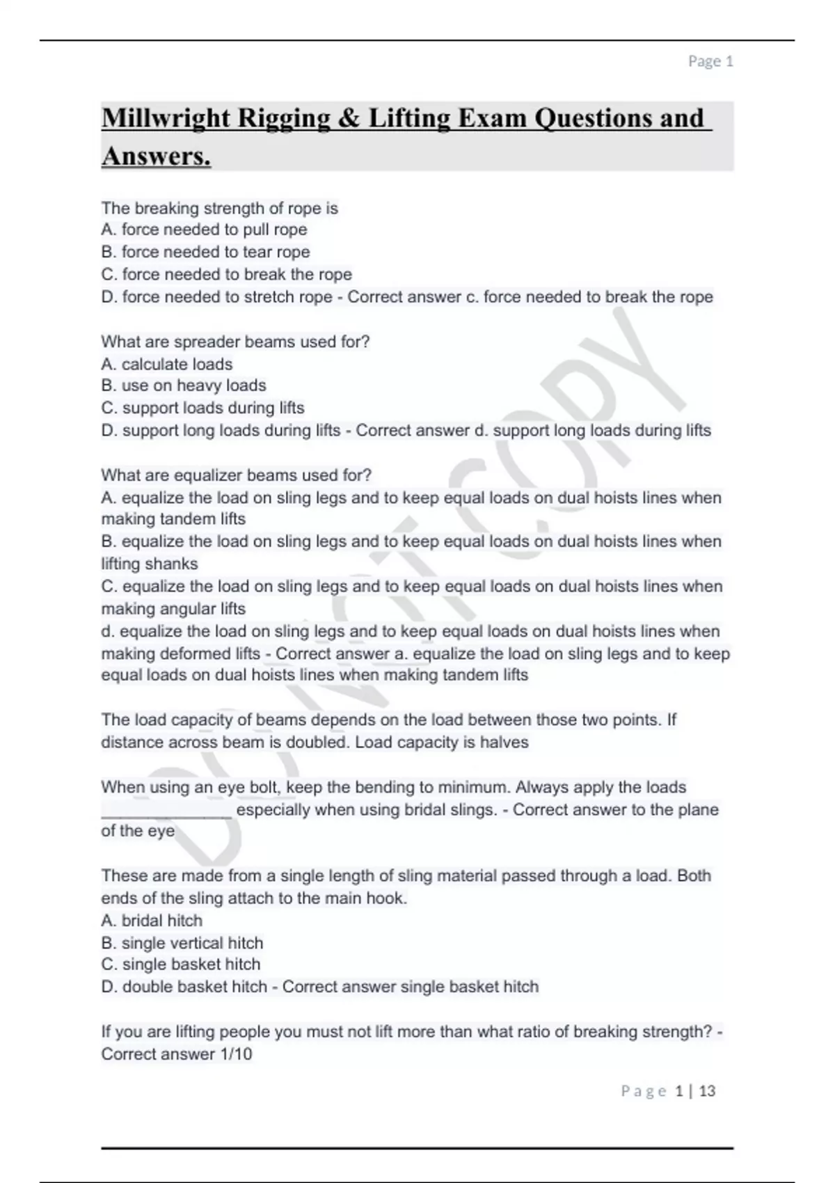 Millwright Rigging & Lifting Exam Questions and AnswersMillwright Rigging & Lifting Exam Questions and Answers