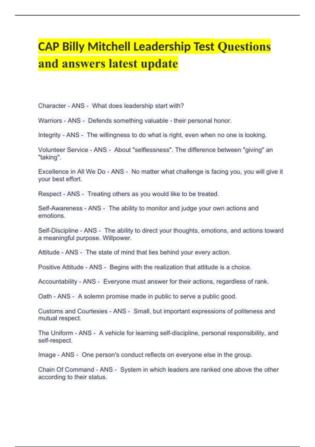 CAP Billy Mitchell Leadership Test Questions and answers latest update