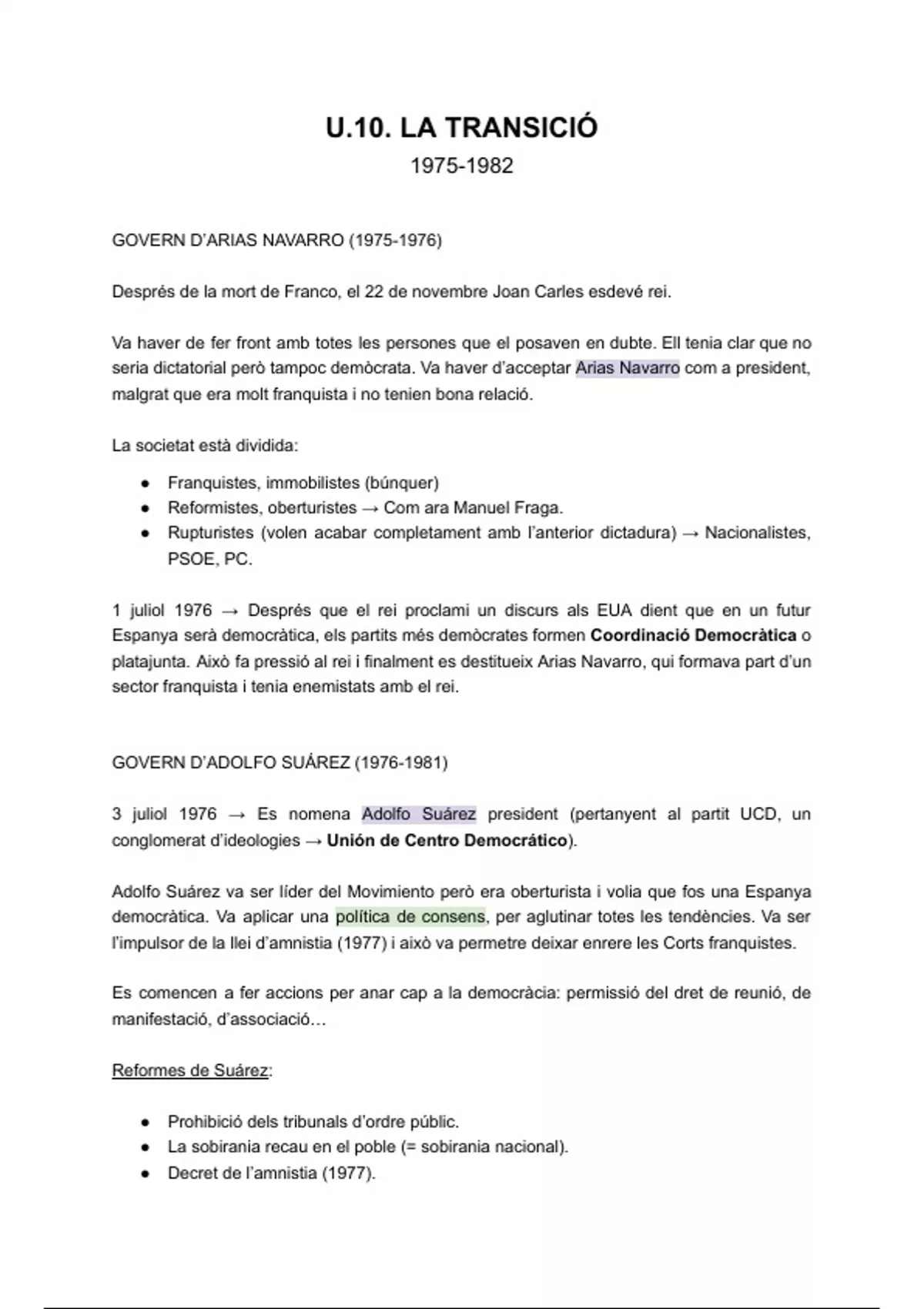 3 juliol 1976 → Es nomena Adolfo Suárez president (pertanyent al partit UCD, un