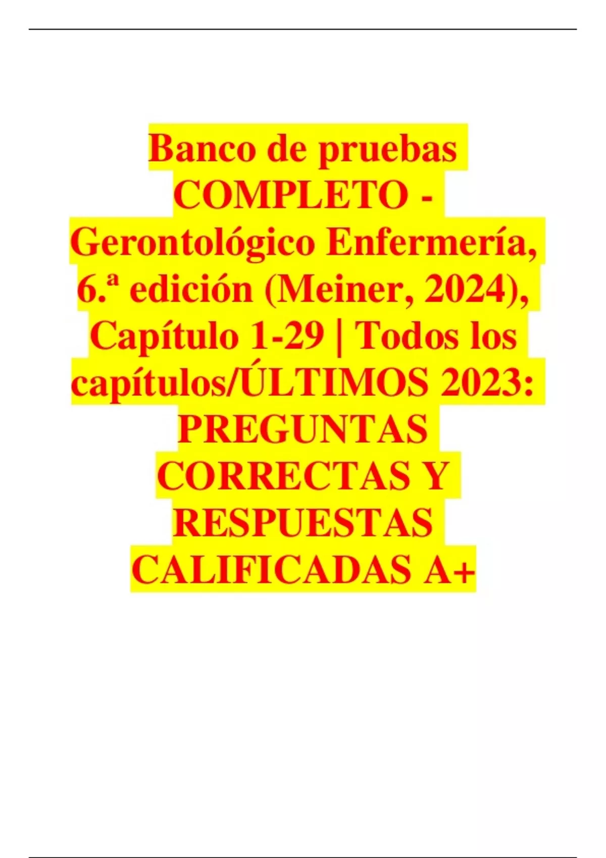 Banco de pruebas COMPLETO - Gerontológico Enfermería, 6.ª edición (Meiner, 2024), Capítulo 1-29 | Todos los capítulos/ÚLTIMOS 2023: PREGUNTAS CORRECTAS Y RESPUESTAS CALIFICADAS A+