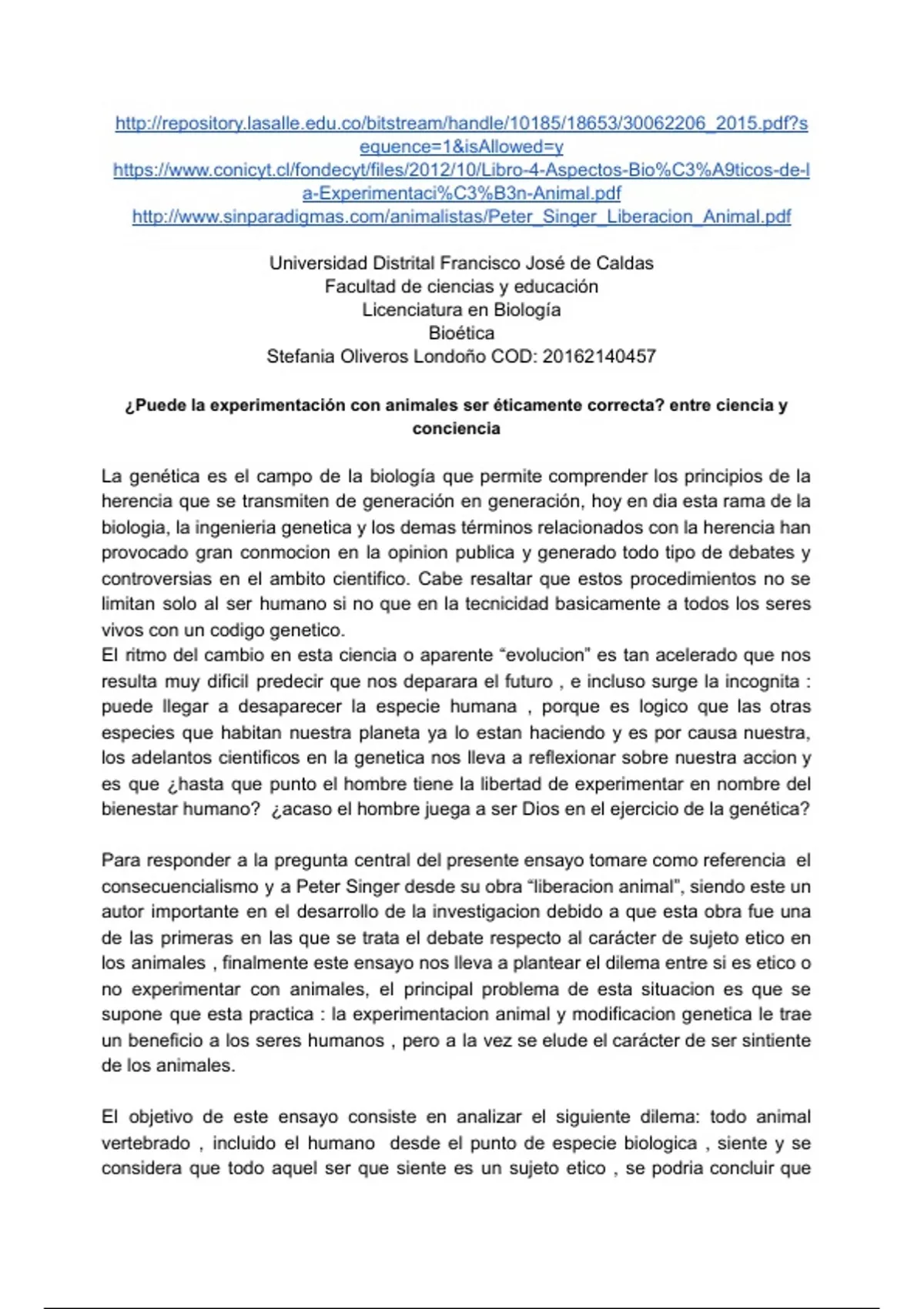 los animales , finalmente este ensayo nos lleva a plantear el dilema entre si es etico o