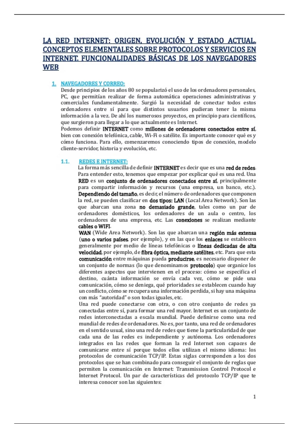 LA RED INTERNET: ORIGEN, EVOLUCIÓN Y ESTADO ACTUAL.