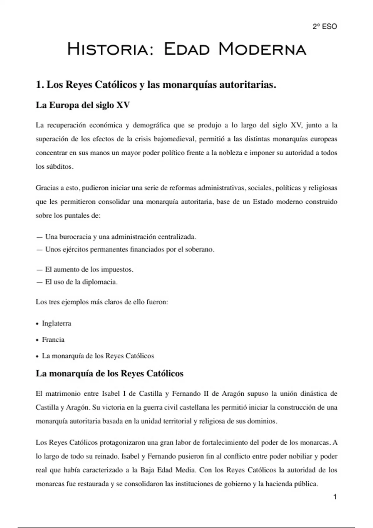 1. Los Reyes Católicos y las monarquías autoritarias.