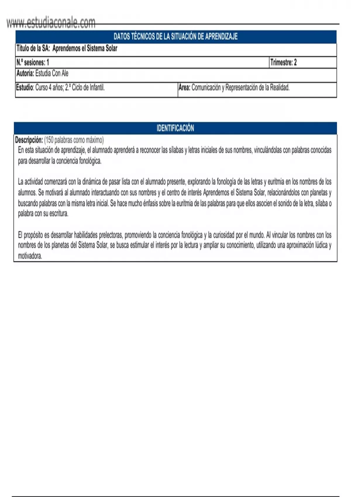 Título de la SA: Aprendemos el Sistema Solar