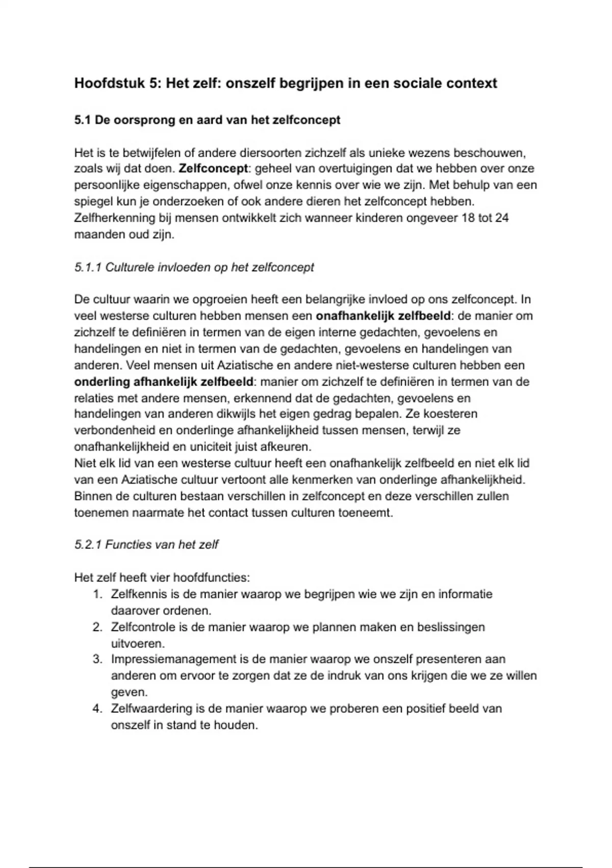 Hoofdstuk 5: Het zelf: onszelf begrijpen in een sociale context
