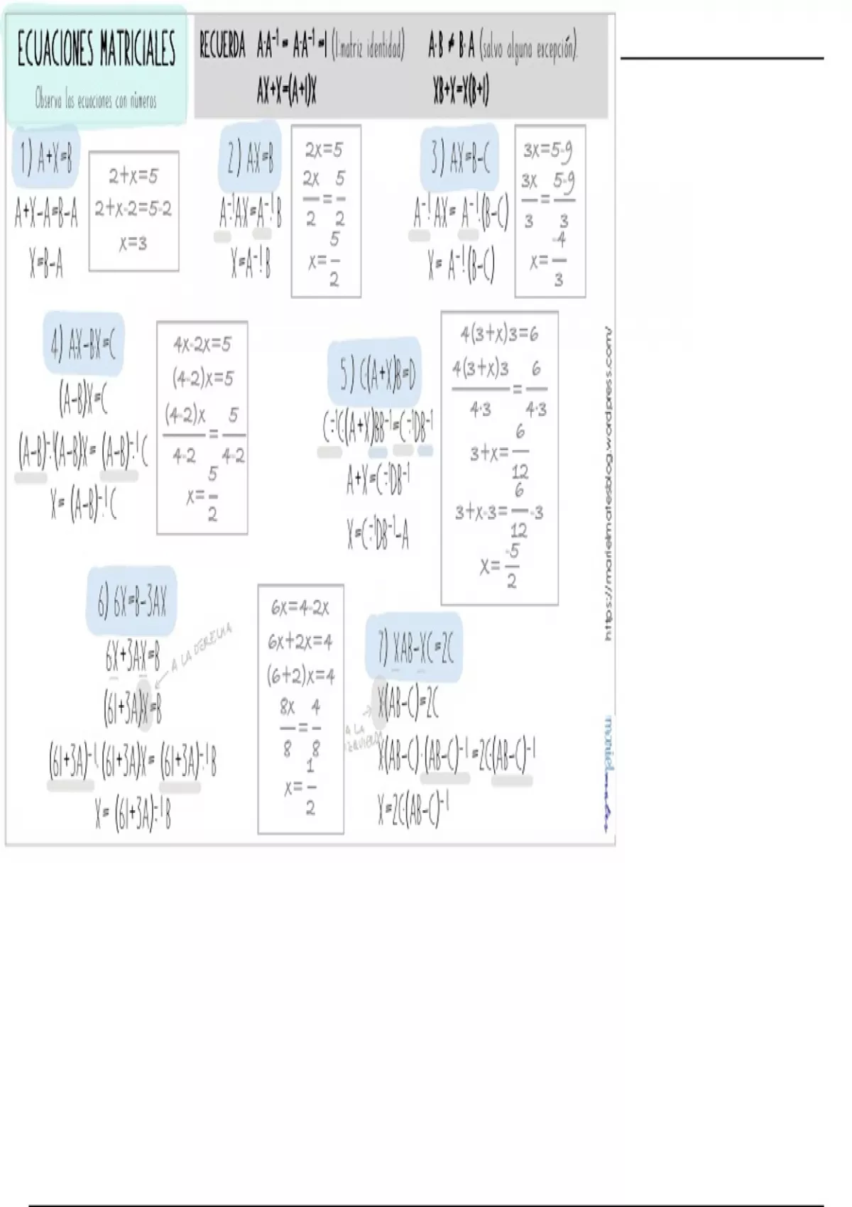 Observa las ecuaciones con numeros AX+X=(A+I)X XB+X=X(B+I)