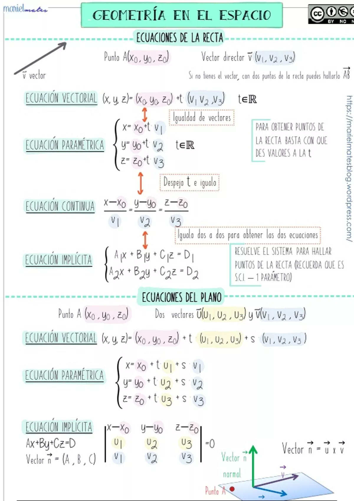 ECUACION VECTORIAL (x, y, z)= (x0 , y0 , z0) + t · (u1 , u2 , u3) + s · (v1 , v2 , v3 )