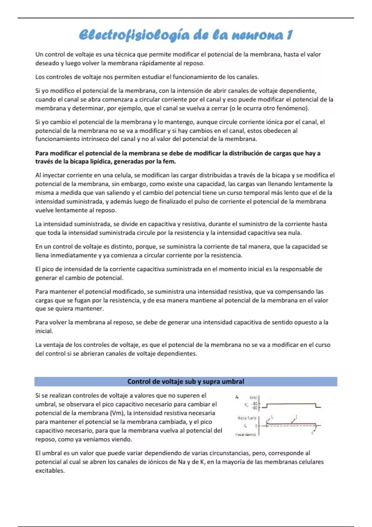, Electrofisiología de la neurona 1