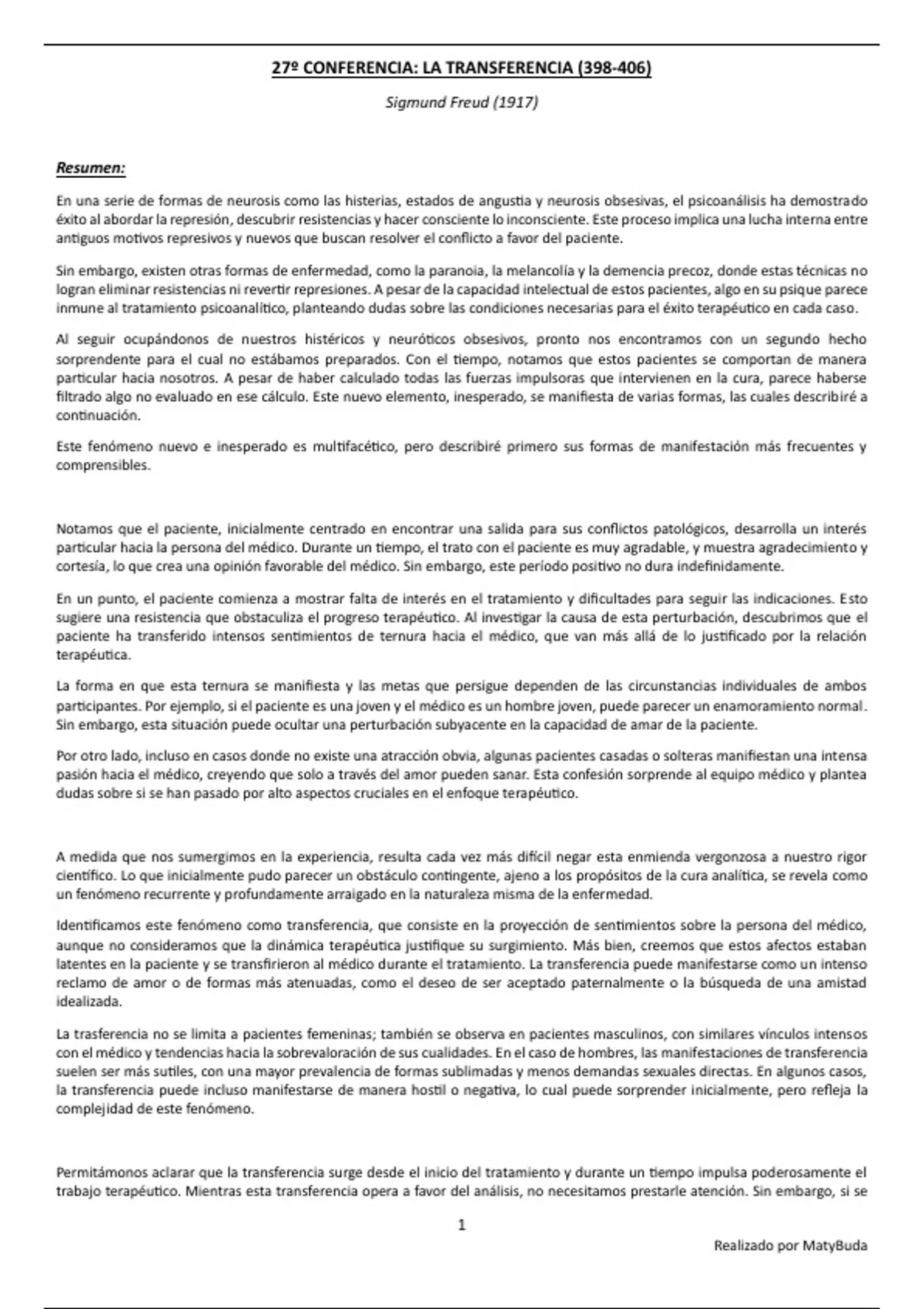 27º CONFERENCIA: LA TRANSFERENCIA (398-406)